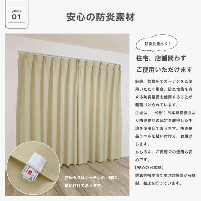 3級遮光、防炎、断熱、保温、ウォッシャブルと多機能のカーテンです。群馬県桐生市で生地の製造から縫製、発送を行っております。