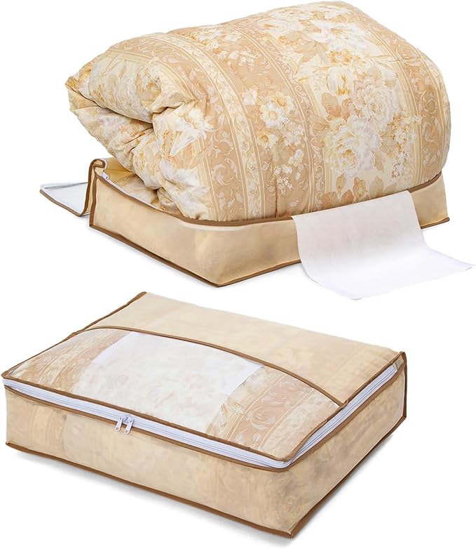 ●かさばりがちな羽毛布団をすっきりコンパクトに保管できる。せまい場所やすき間にも収納可能。