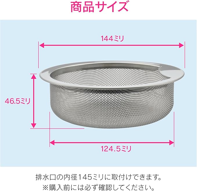 直径144ミリのキッチンシンク用浅型ゴミカゴです。