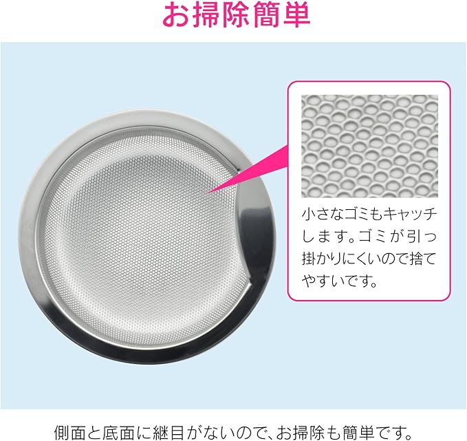 ●パンチング加工なので、ゴミが詰まりにくく洗いやすいです。