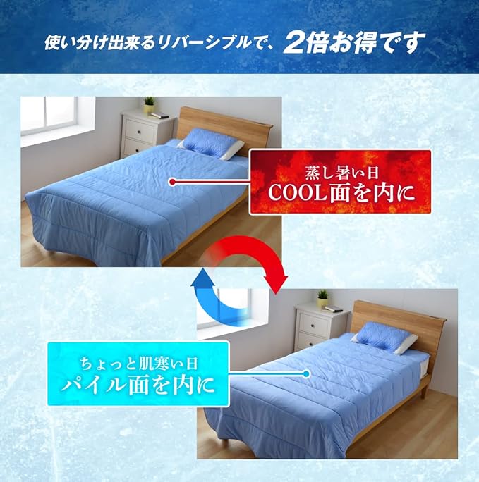 MITAS Q-MAX 0.505 接触冷感&やわらかパイル リバーシブルケット シングルサイズ 140x200cm ブルー Q-max値0.5以上 ひんやり 洗える抗菌防臭わた使用 熱帯夜対策