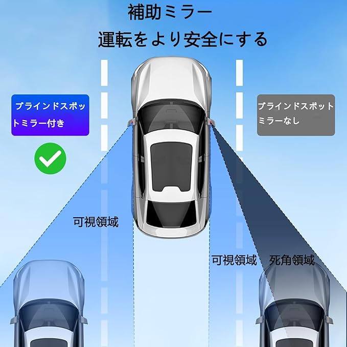 補助鏡は、側面と後方の車両位置を含む車両周辺の交通状況をよりよく理解するのに役立ち、運転の安全性を高め、事故のリスクを減らすことができる