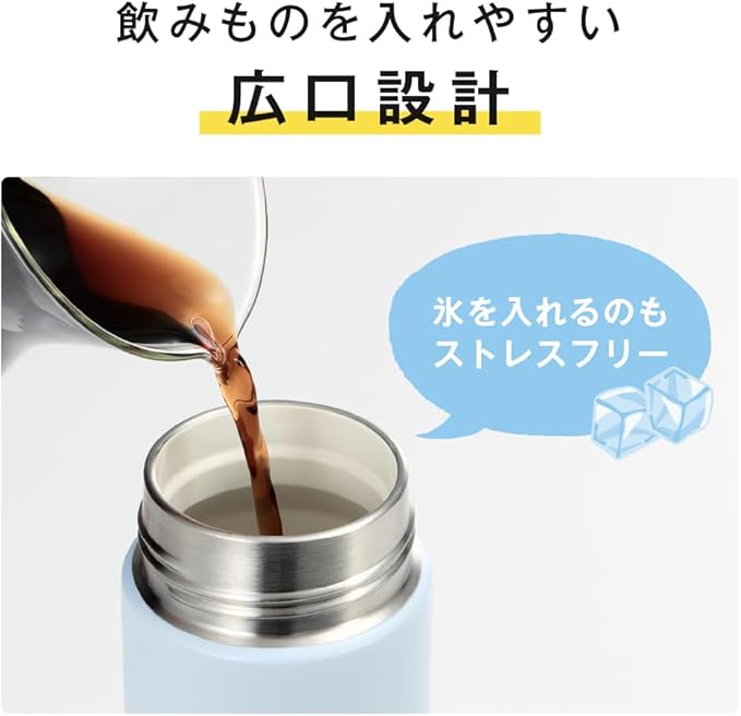 素材:内びん:ステンレス鋼(セラミック塗膜加工)/ 胴部:ステンレス鋼(アクリル樹脂塗装)/ フタ:ポリプロピレン(発泡ポリプロピレン内蔵)/ パッキン:シリコーンゴム