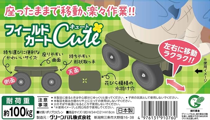 グリーンパル フィールドカートCute 腰掛 イス 移動 ガーデニング 草むしり 洗車