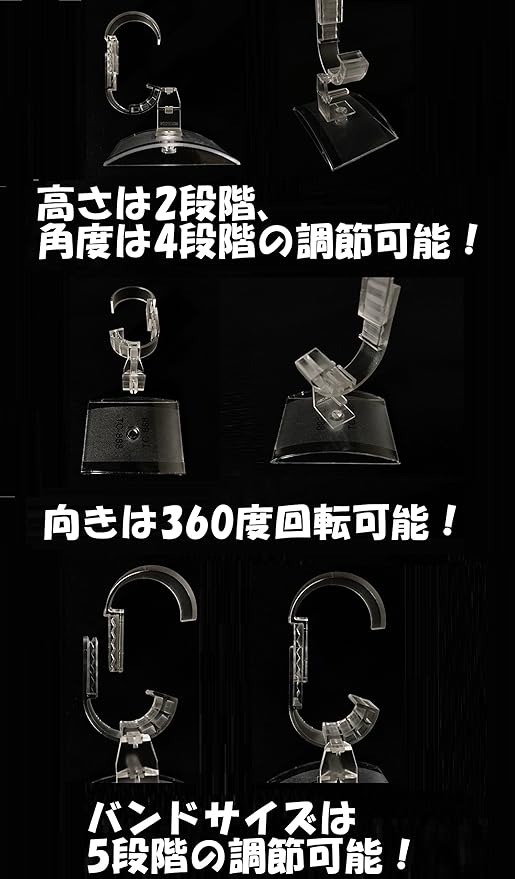 バンドサイズは5段階、角度は4段階、高さは2段階の調節可能!向きも360度回転可能!