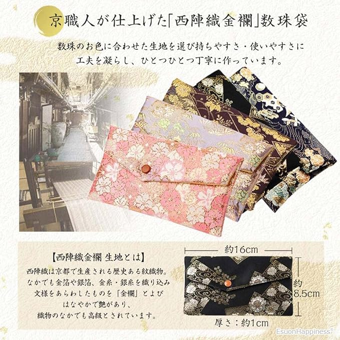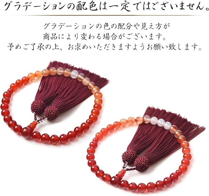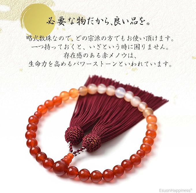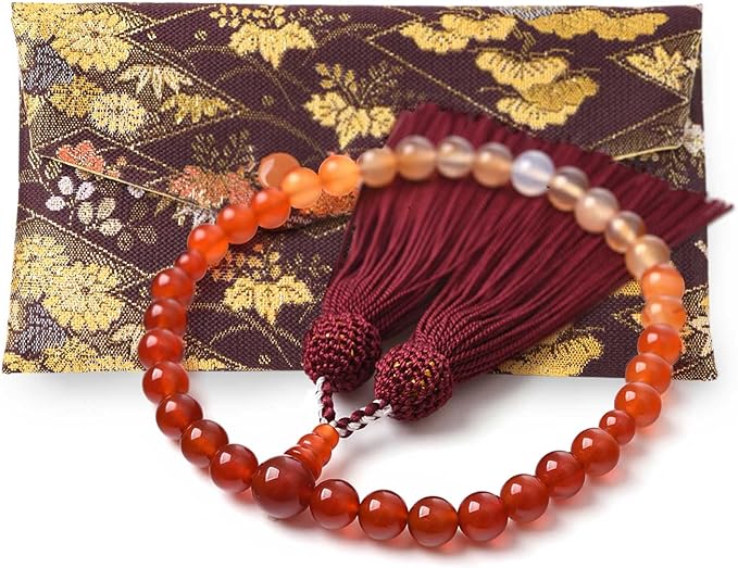 [EsuonHappiness] 数珠 女性用 西陣織金襴 数珠入れ付き 天然石 グラデーション 略式念珠 8mm [赤メノウ/瑪瑙]