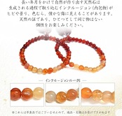 親珠:赤メノウ10mm玉 主珠:赤メノウ8mm玉(白メノウ一部含む) 天珠:赤メノウ6mm玉 ボサ:赤メノウ 房:頭房