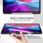 JETech iPad Pro 12.9 インチ ケース (2020/2018モデル 第4世代/第3世代) 専用 保護ケース Pencilホルダー付き ペンシル 第2世代Pencil充電対応 ソフトTPUバック スリム保護カバー オートウェイクアップ/スリープ機能付き (ブラック)