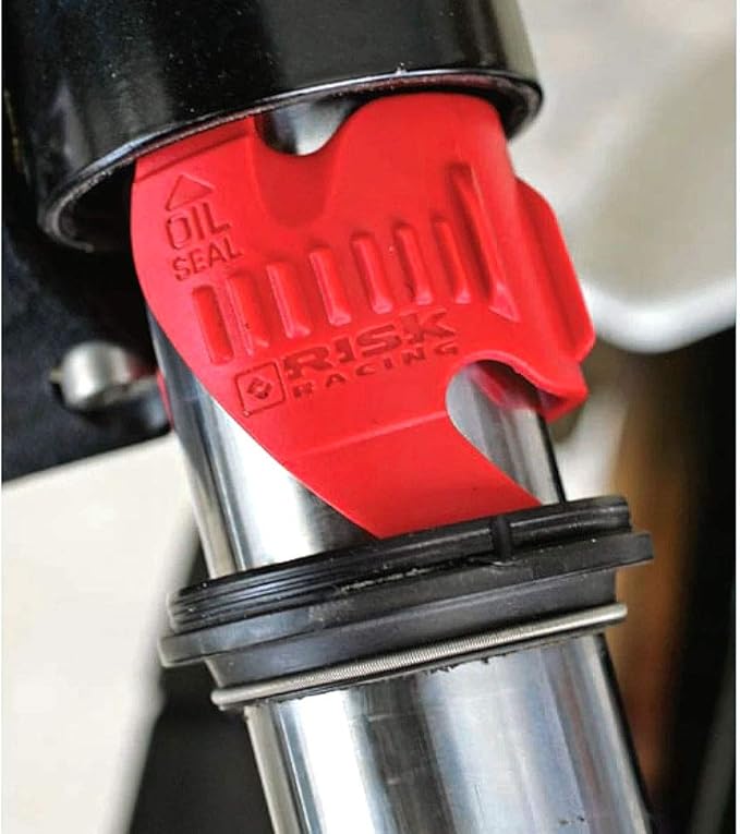 オイル漏れ対策のメンテナンスツール砂や泥が入ってしまったフロントフォークのシールをクリーニングするためのツールです。ダストシールを下へ下げ、シールドクターをはめます。エッジを差し込み回転させて、砂や泥を書き出します。上下にエッジがありますので、オイルシールとダストシールのクリーニングが可能です。