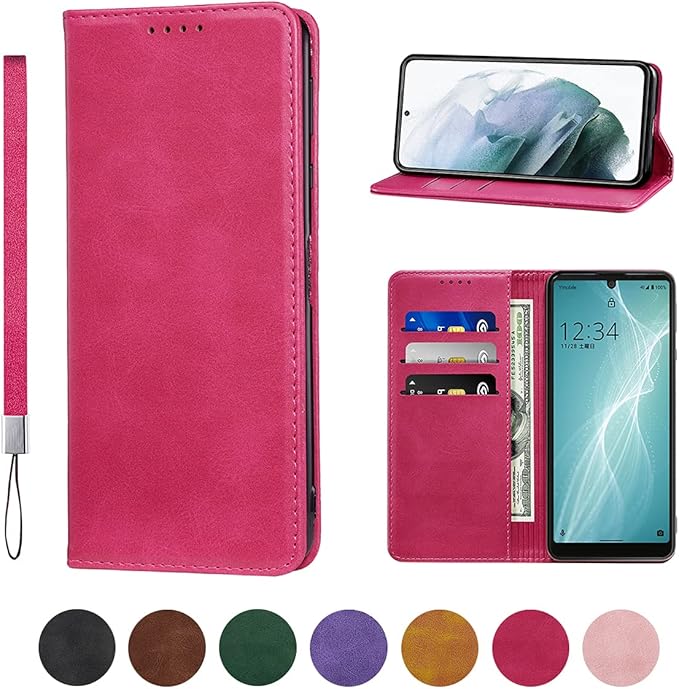 Sense4 ケース 手帳型 高質PUレザー Sense4 Lite カバー Sense 5G ケース Sense4 basic SH-41A SH-M15 通用ケース 耐衝撃 内蔵マグネット開閉式 ベルトなし スマホケース おしゃれ カードポケット スタンド機能 便利 スプラット同梱 携帯ケース(ローズレッド)
