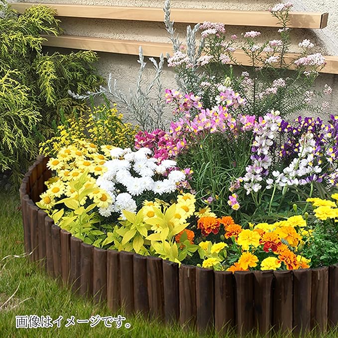 このガーデンエッジの最大の特長は、**天然木(中国杉)**の持つ自然な風合いと、**十分な深さ(高さ20cm)**による**高い土留め効果**にあります。天然木特有のやさしい質感と木目が、庭の景観に自然に溶け込み、**おしゃれな菜園や花壇**を演出します。表面には、屋外での使用に適した**アクリル樹脂(水性)塗装**が施されており、**耐候性が向上**しています。