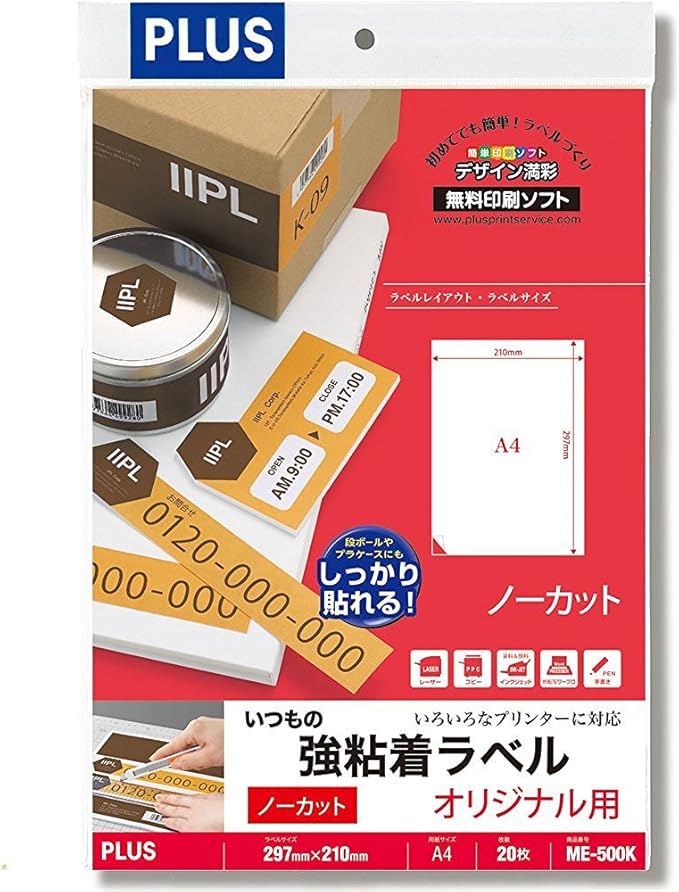 プラス ラベル いつもの強粘着ラベル ノーカット 20枚 ME-500K 45-540