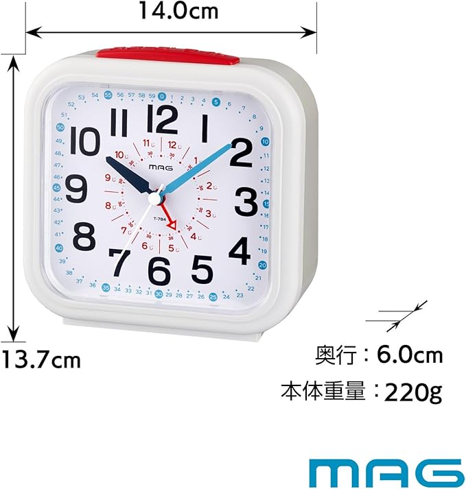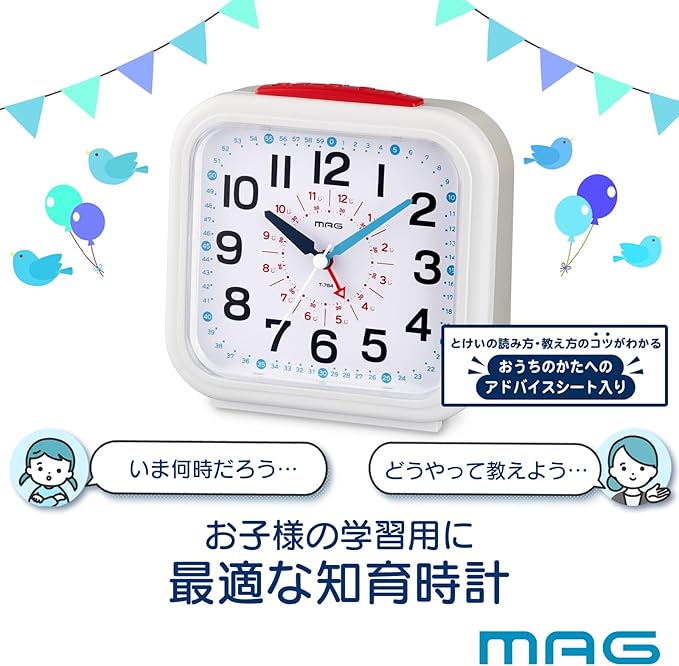 MAG(マグ) 目覚まし時計 置き時計 知育時計 子供 勉強 時計の読み方 教え方アドバイスシート付き アナログ 静音 連続秒針 電子音 アラーム スヌーズ ライト ホワイト おきてよーめるT-784 WH-Z ノア精密