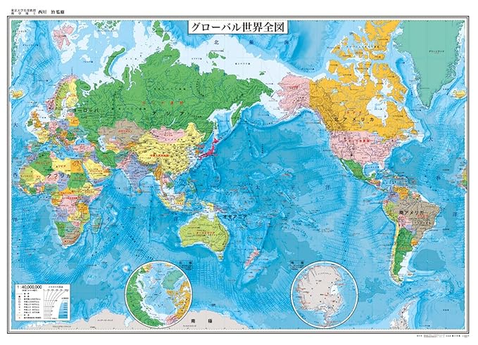 北海道mono商会 世界地図 ポスター(サイズ:1080 772) 国別色分け 行政図 2023年 地図 マップ