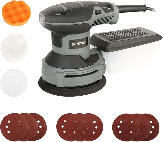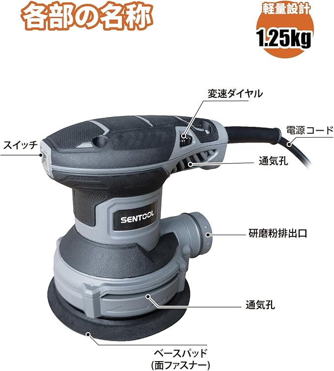 SENTOOL サンダー 電動 300W ランダムサンダー AC100V ポリッシャー コード式 オービタルサンダー 6段階変速 木工研磨 車磨き・油膜・うろこ取り・鏡面磨きに ダブルアクションポリッシャー 手磨きの手間を1台で軽減 電動サンダー ペーパー寸法125mm 高集塵システム TRS125