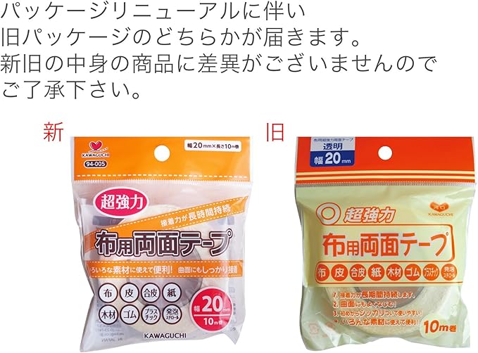 KAWAGUCHI 超強力 布用 両面テープ 透明 10m 幅20mm 94-005