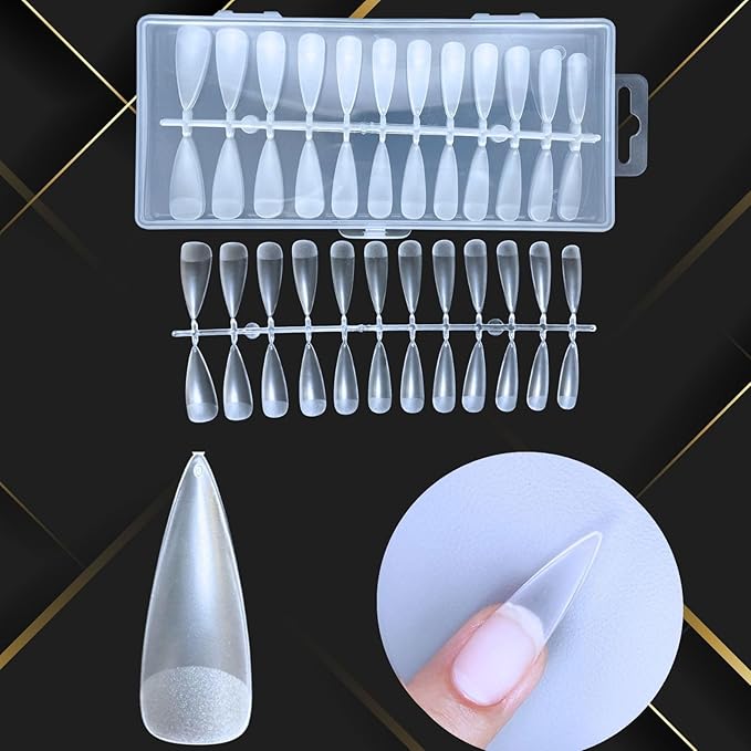 CHARMIX ネイルチップ つけ爪 アーモンド ポイント 長さだし 長さ出し ロング 超薄 極薄 薄型 サンディング 済み クリア 無地 自然なフィット感 練習用 業務用 DIY用 (008.ロングポイントL, 240pcs)