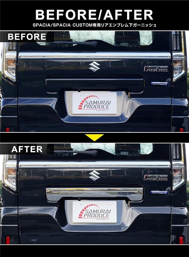 サムライプロデュース スペーシア スペーシアカスタム スペーシアギア MK54S MK94S 対応 リアエンブレム下 ガーニッシュ 1P 鏡面仕上げ