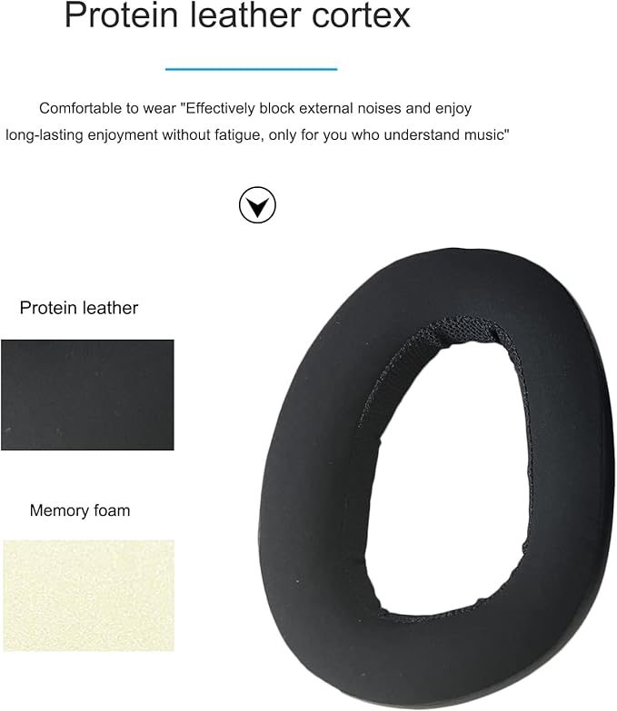 丈夫なプロテインレザーと低反発素材で作られたイヤーパッドは滑らかな表面で快適な手触りです