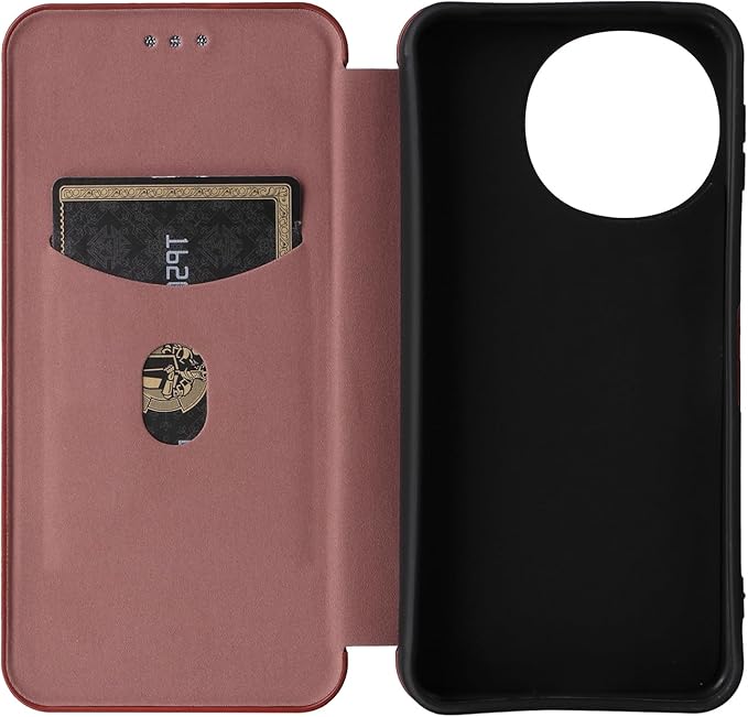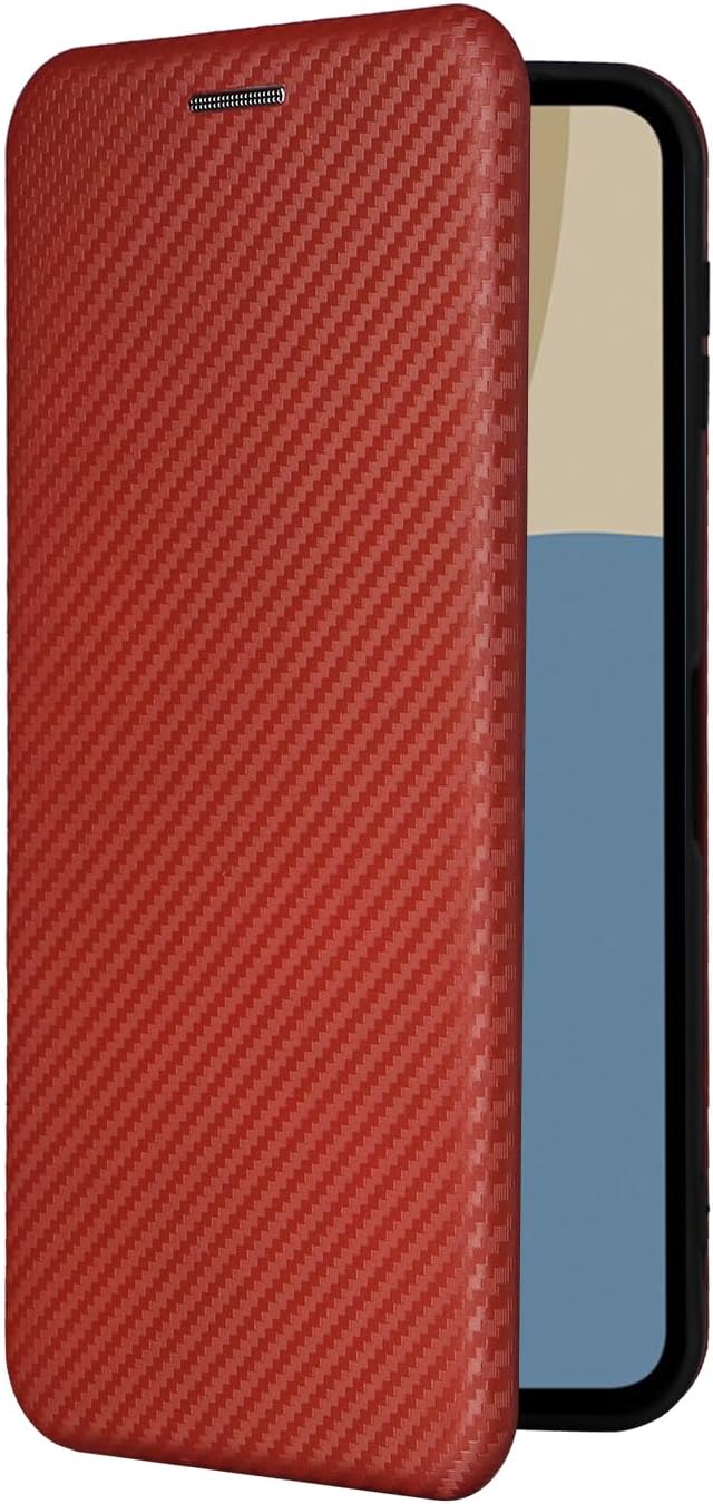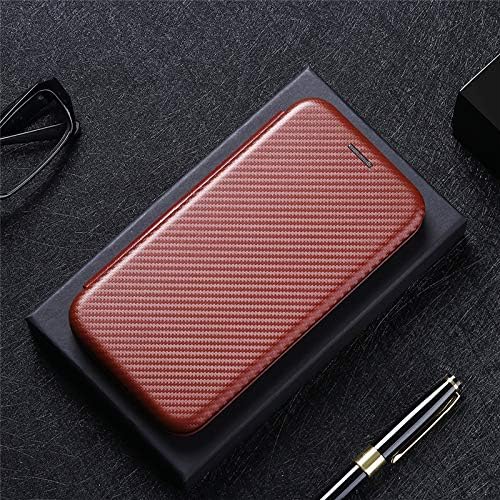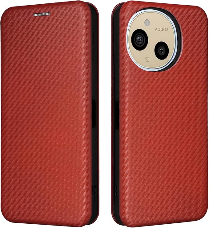 AQUOS sense9 SH-53E 用 手帳型ケース 薄型 炭素繊維カバー TPU 保護バンパー カーボンデザイン 財布型 マグネット式 カード収納 落下防止 ホルダ 横開き (ブラウン, AQUOS sense9)