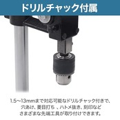 1.5~13mm用ドリルチャック付属で、丸棒型と平型菱目打ちが簡単に取り付け出来ます。