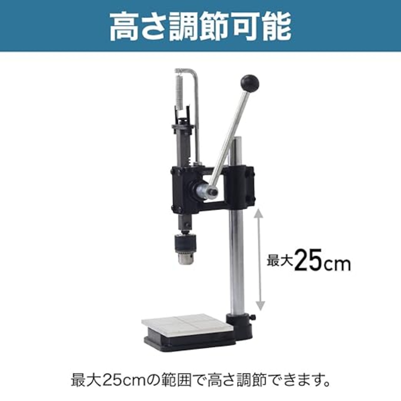 【商品詳細】 サイズ(約):12 15 38.5cm 重量(約):6kg(本体のみ) 最大押し圧力:約160kg 付属品:ドリルチャック、PP板、六角レンチ(大)(小)各1本