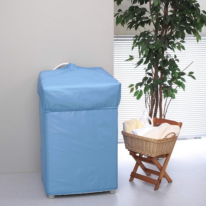 ベランダや屋外の洗濯機を雨やホコリから守る! ○ポリエステル素材なので寒い時期にベランダや屋外に置いても硬くならず雨やホコリから洗濯機を保護します。○本体カバーのギャザー部分が伸縮するので洗濯機にかぶせるだけでフィットします。○フタカバーは給水ホース穴付きですっきりセットできます。○フタカバーはヒモで本体カバーと固定するので風などで飛ぶのを防げます。○ズレ落ち防止ゴムが劣化した場合市販のゴムに入れ直して使用出来ます。○洗濯機の防振・防音に洗濯機足元マットもご利用ください。