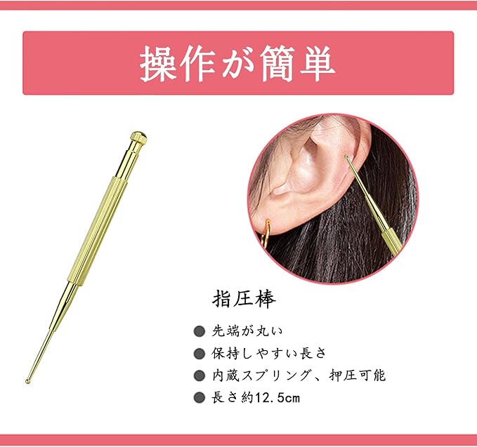 【使いやすい】1.押し棒を使ってツボを確認する。2.耳とピンセットを清潔にする。3.ピンセットを使用してパッチを耳の該当するツボに貼り、手で軽く押して固定すればよい。操作は簡単で、専門的な指導は必要ありません。