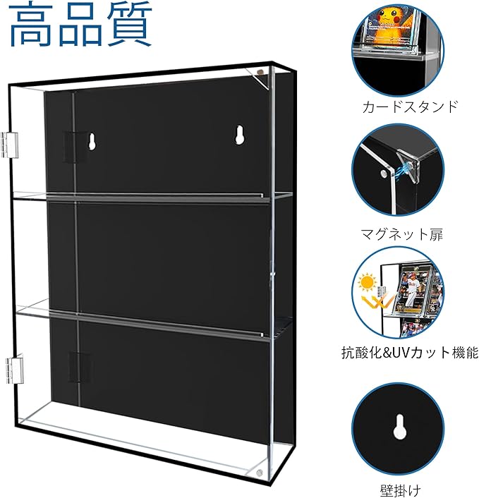 【マグネット扉&UVカット機能】強力マグネット扉でしっかり固定し、ワンタッチで簡単に開閉可能。UVカット機能付きで、紫外線による色褪せ・劣化を防ぎ、カードを美しい状態で長期保存できます。