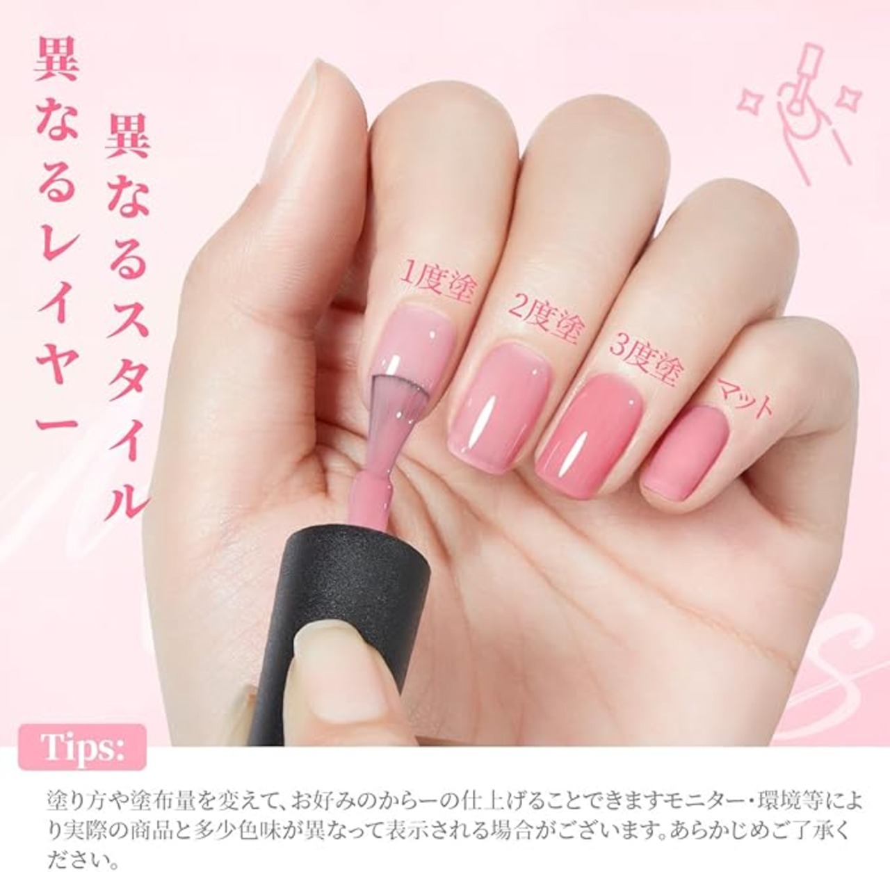 幅広く適用:ワンカラーでもグラデーションネイルでもどの季節でも使え、サロン級のジェルネイルを楽しめ、塗り方や塗布量を変えて、お好みのカラーに仕上げることができます。誕生日、記念日、バレンタインデー、クリスマス、母の日、敬老の日、お祝い、家族や友人のための絶秒な贈り物プレゼントです