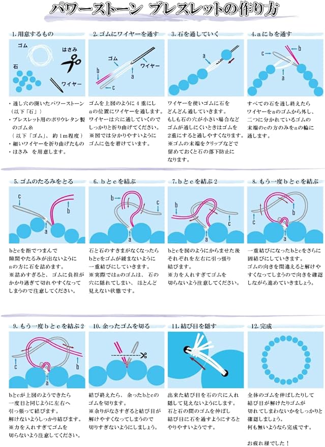 この商品だけでパワーストーンブレスレット作製に必要なものが揃いますので、すぐに天然石ブレスレット作りや修理を行っていただけます。ストラップやネックレス作りにもどうぞ。