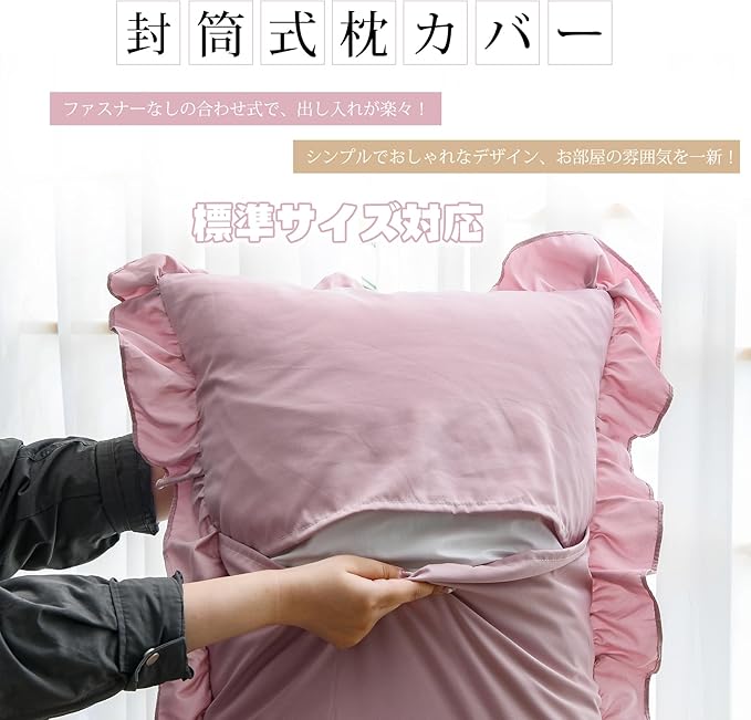 【おしゃれなデザイン/優しい肌触り】 布団カバーと枕カバーの周りには可愛いフリルが付いています。生地よさを重視した柔らかなピーチスキン加工を施し、軽くてなめらかな肌ざわりを愉しみながら心地よくお休みいただける布団カバーです。ポリエステル100%、綿素材と比べてシワになりにくく、アイロンいらずで扱いやすいから、お手入れもラクラク!体と心の疲れを癒し、快い睡眠を毎日楽しんでいただけます。