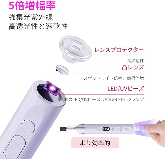 【UVランプ設計】ドリルの反対側にUVランプを設置し、60秒後に自動的に消灯するように設計しました。道具を変えずに爪を乾かすことができ、日常旅行の手伝いになります。コンパクトで持ち運びしやすく、友人や家族と一緒に自宅でDIYするのに適しています
