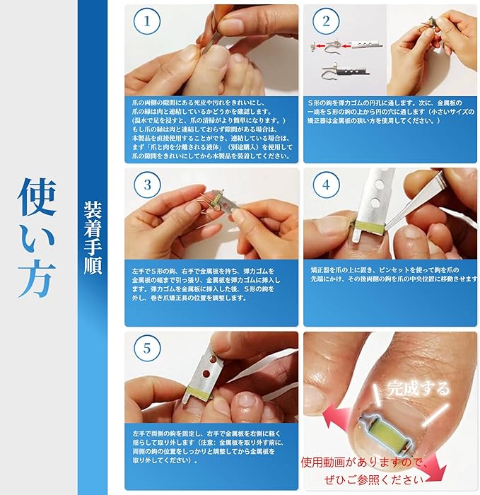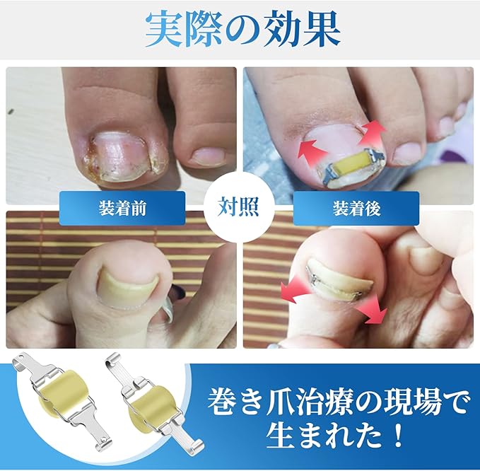 【生活に影響なし】巻き爪器具を装着している間、靴やお風呂に影響はありません。本品は高品質のステンレス鋼と弾性ラテックスで作られており、水が本品に影響を与えることはありません。簡単に付け外しでき、コストパフォーマンスに優れています。