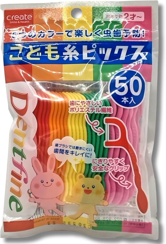 デントファイン こども糸ピックス 50本入り。 子供用歯間フロスで虫歯予防に。 デンタルフロス キッズ用 対象年齢2才~。
