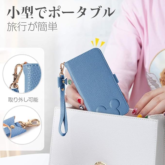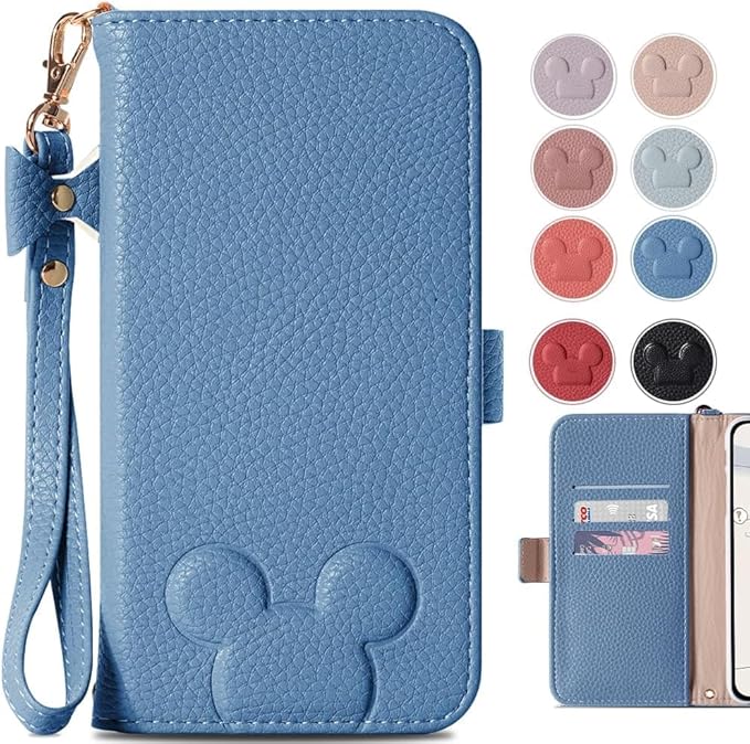 Acclink iPhone 16Pro ケース 手帳型 iPhone 16Pro 通用ケース スタンド PUレザー カード収納 軽量 便利 アイフォン16Pro 携帯カバー カードポケット スタンド機能 リトルマウスパターン 財布型 かわいい柄 iPhone 16Pro ケース 手帳型 スマホケース 全面保護カバー マグネット式 横置き機能 PUレザー ヘイズブルー