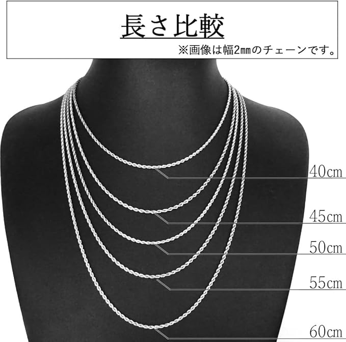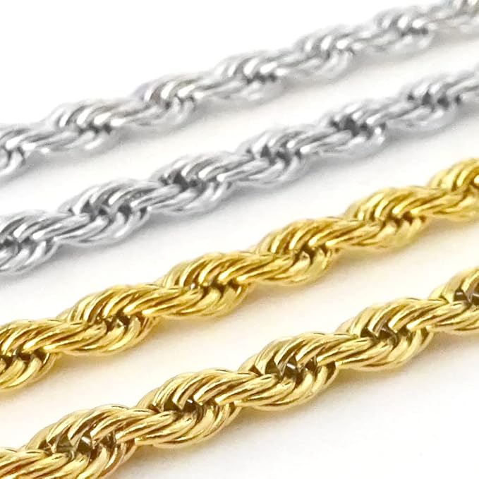 [京都おかげさまで] アレルギー対応 ステンレス フレンチロープチェーン ネックレス ゴールド 幅 2mm 3mm
