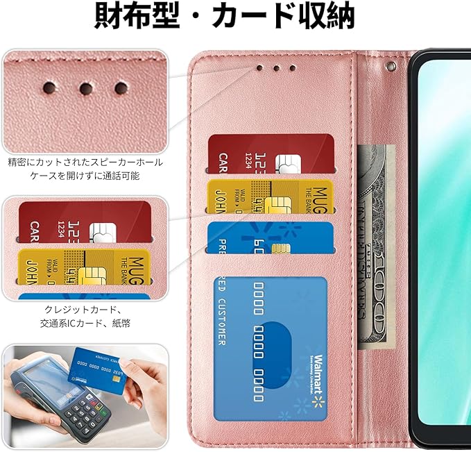 カード収納:Arrows We2 FCG02手帳型ケースの内側には、3つのカードスロットと隠しポケットがあり、カードや名刺、定期券などをしっかり収納できます。アローズ we2 カバーの収納機能により、より便利な生活を送ることができます!