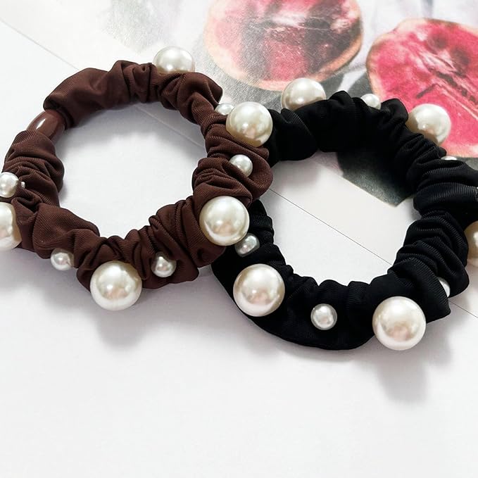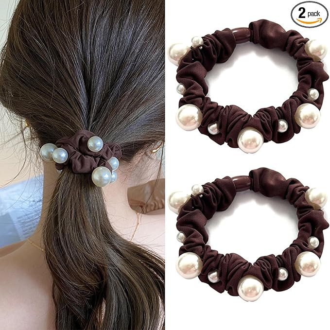 Natunofu ヘアゴム パール シルク シュシュ 大人 髪ゴム 跡がつかないヘアゴム おしゃれ 大人 跡がつかない レディース 茶色 ヘアアクセサリー ゴム 茶色 飾りつき 高弾性 優雅 エレガント