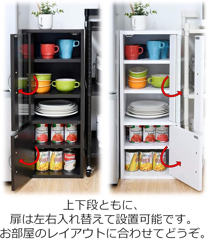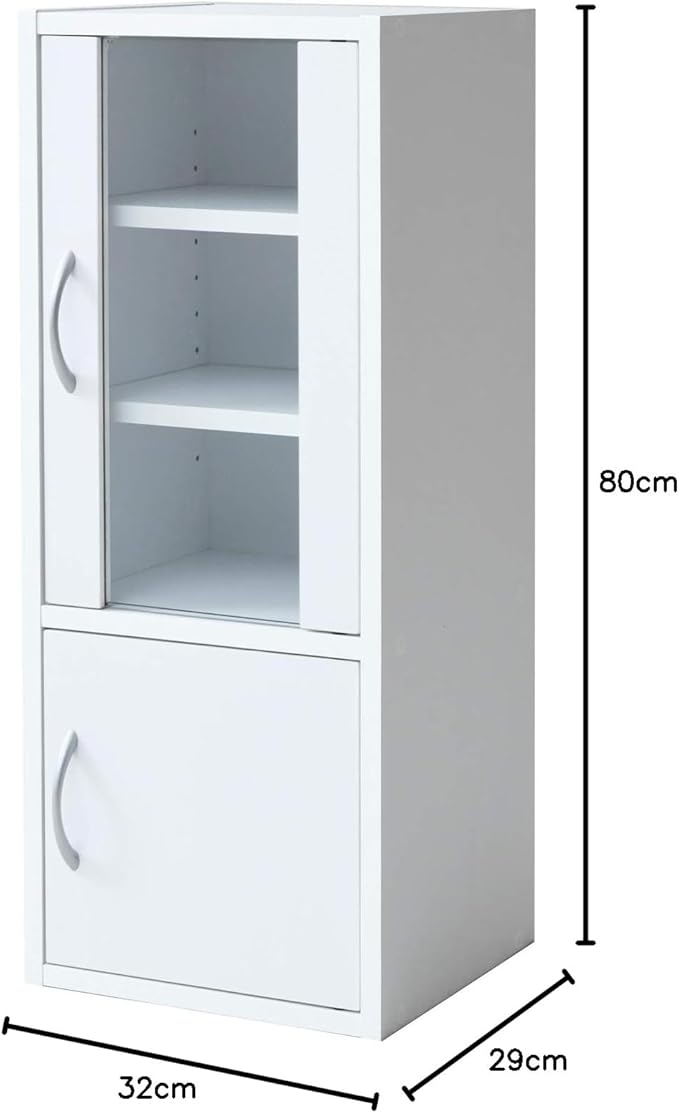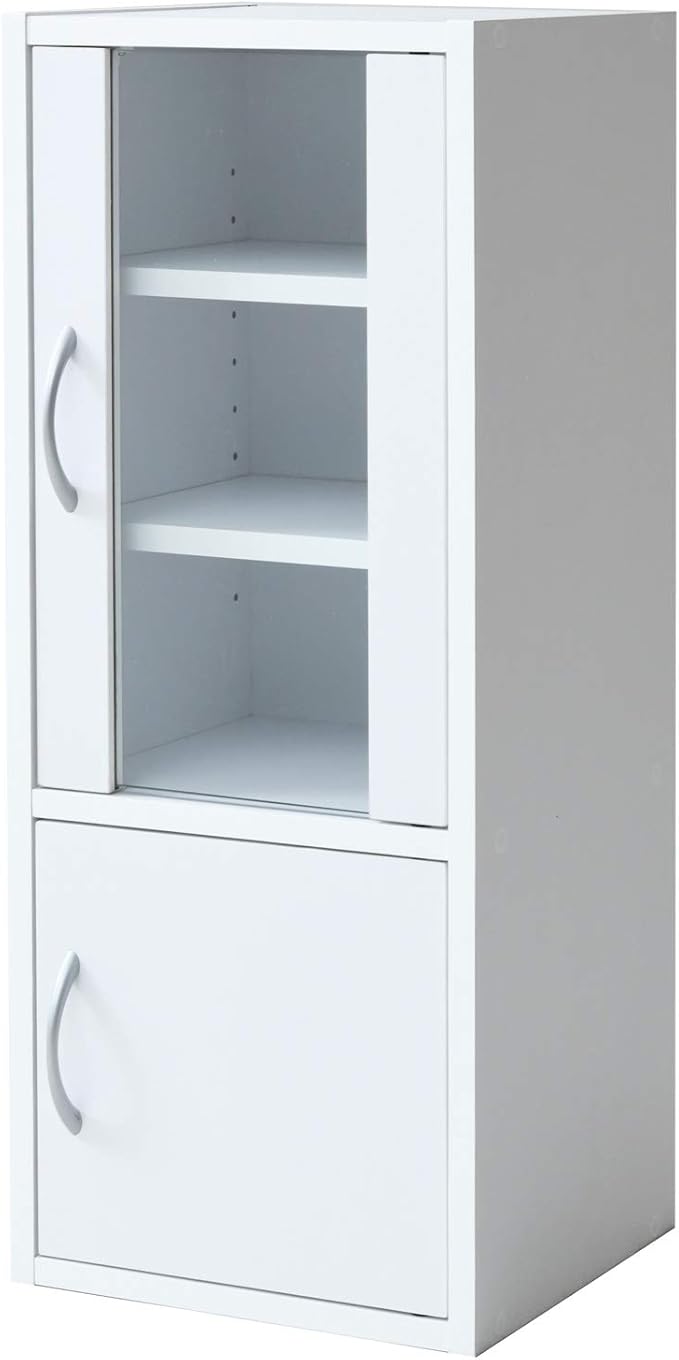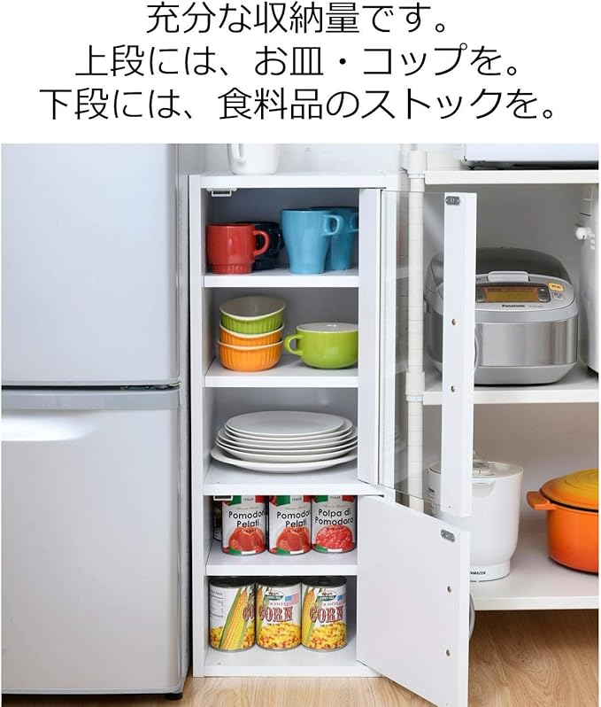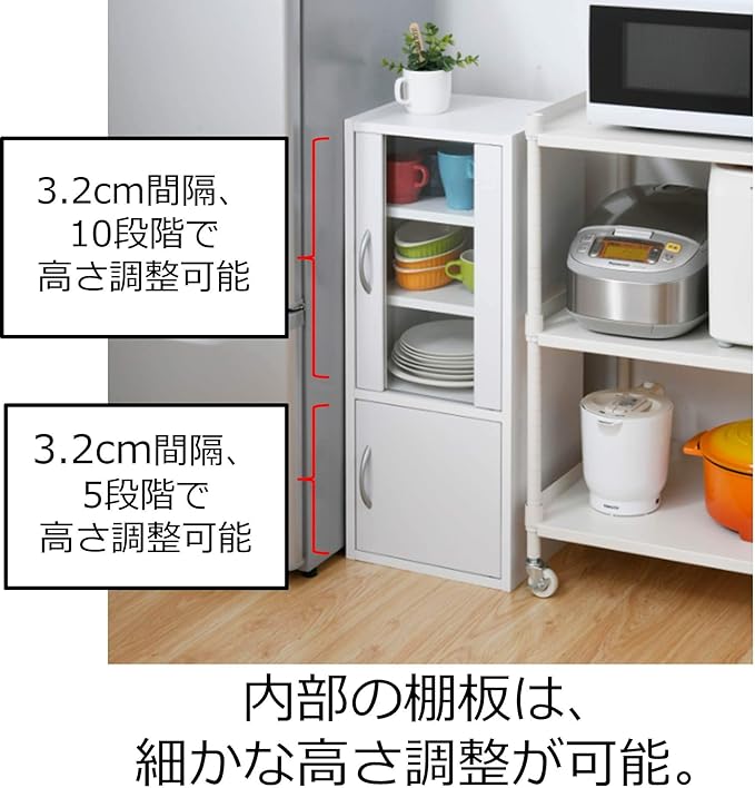 山善(YAMAZEN) 食器棚 (スリム) 幅32㎝ (ミニ) 高さ80 奥行29㎝ (扉が左右付け替えられる/棚板高さ調節) 一人暮らし 組立品 ホワイト CCB-8030(WH)