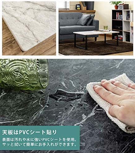 丈夫で安定感のあるスチール脚+大理石柄天板のシックなセンターテーブル。 簡単な作業や来客時にも活躍できる90cm幅の長方形テーブルです。 天板は汚れや水に強く、サッと拭くだけでお手入れできるPVCシート貼り! ブルックリンスタイルや男前インテリアの空間に取り入れたいアイテムです。