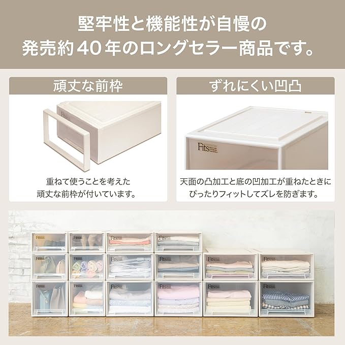 大人気フィッツシリーズから、幅22.5㎝ですき間収納としても使用いただける収納ケースが登場。ワイドディープの上に2つ積み重ねて合わせ使いも可能。