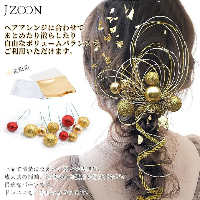 [JZOON] 髪飾り 成人式 水引 和玉 金箔 銀箔 かすみ草 組紐 人気 ロープ ゴールド シルバー ヘアアクセサリー 前撮り 振袖 卒業式 結婚式 和装 袴 着物 浴衣に ブライダル 花嫁 ヘッドパーツ