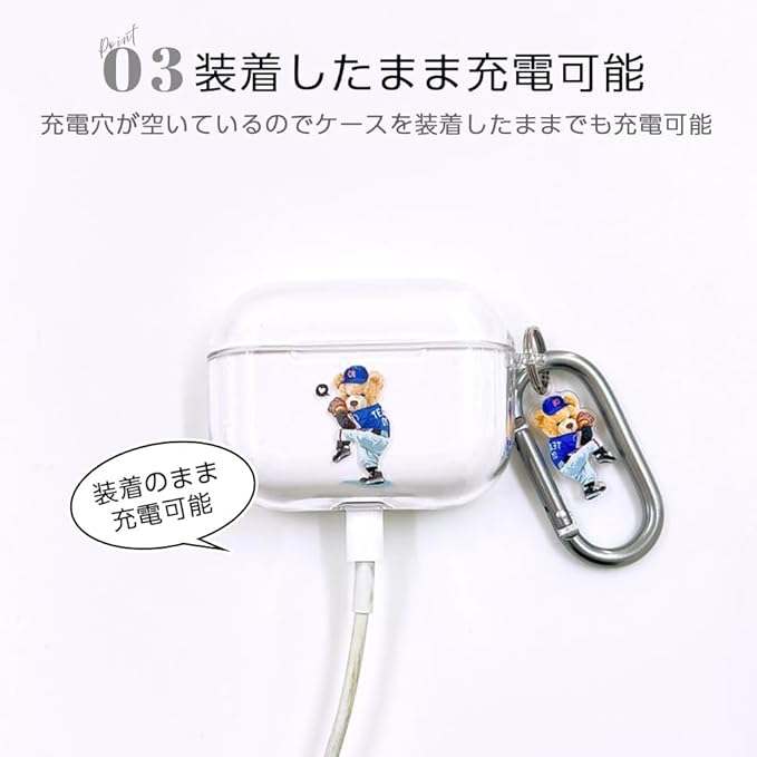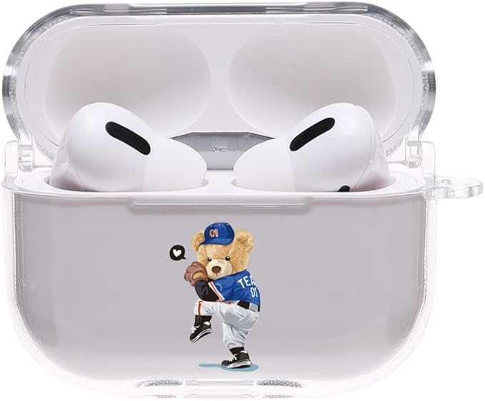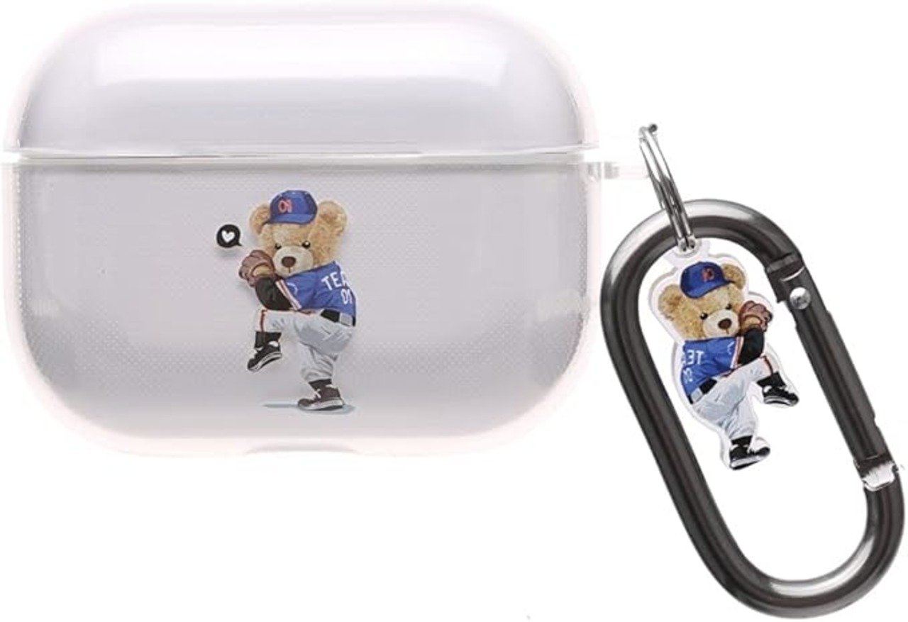 ONLYOU Airpods pro2用 ケース おしゃれ 韓国 かわいい PC くま ベアー 野球 ピッチャー クリア 透明 エアーポッズ プロ カバー レディース メンズ イヤホンカラビナ チャーム ハード(AirpodsPro(第1/2世代) クリア)