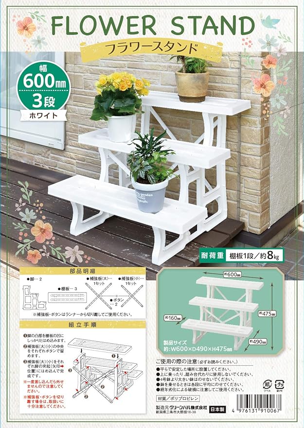 玄関・庭・室内と、様々な場所でお花や観葉植物、小物などを飾る事ができる お部屋や玄関に置き、観葉植物を置けば、癒しの空間を演出できる 2段の棚でお花をすっきりまとめられる プラスチックなので錆びることもなく、組立もとても簡単 耐荷重:1段あたり約6kg