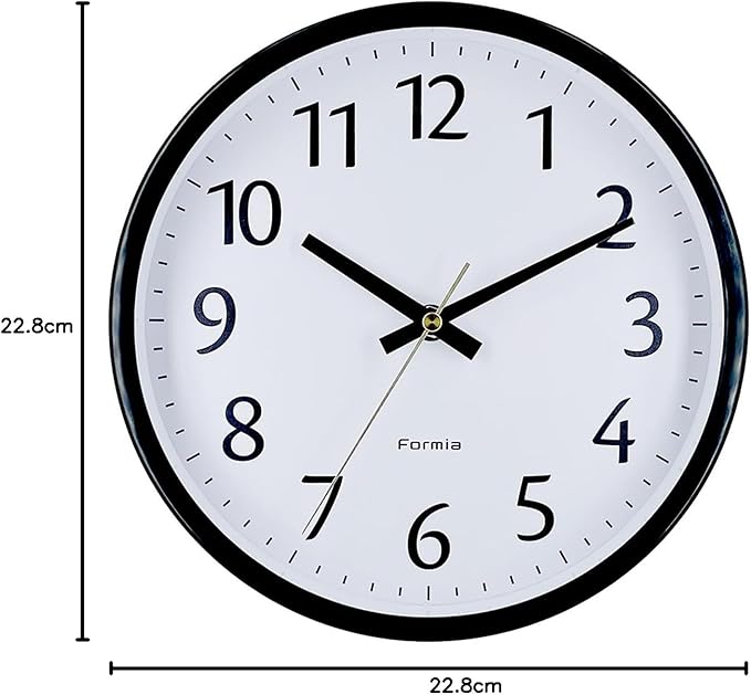 Formia(フォルミア) 壁掛け時計 モノトーン 見やすい文字盤 直径22.8cm モダン ミニマリスト オフィス リビング 子供部屋 ブラック ホワイト