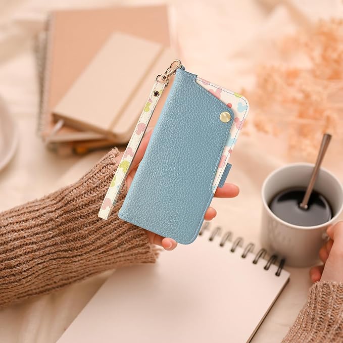 Voqmhg 対応 iPhone 16 ケース 手帳型 アイフォン16 ケース 手帳型 外側にカードポケット付き iPhone16 ケース 手帳型 いphone16 ケース 手帳型 かわいいプリント柄 iPhone 16 手帳型ケース iPhone16ケース手帳型 iPhone 16 カバー 可愛い 贈り物 全面保護 カード収納 あいふおん16ケース 横置きスタンド機能 衝撃吸収,ブルー