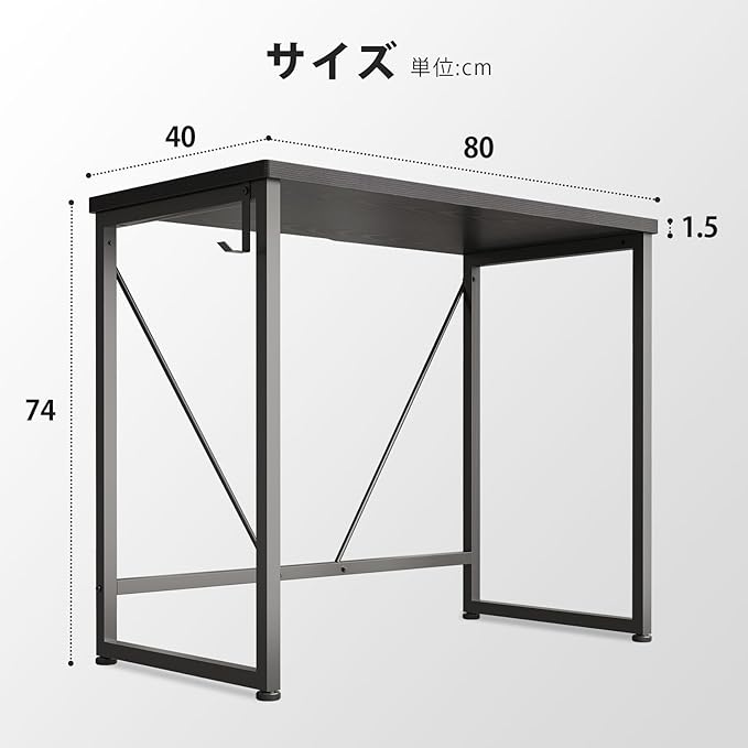 【商品仕様】■デスクサイズ: 幅80 奥行40 高さ74CM ■本体重量:約6.85KG ■梱包サイズ:約幅87.5 奥行43.5 高さ7.5CM/約7.35㎏(梱包材含む) ■日本語組立説明書あり ■簡易取付工具付き■取り付けが簡単。