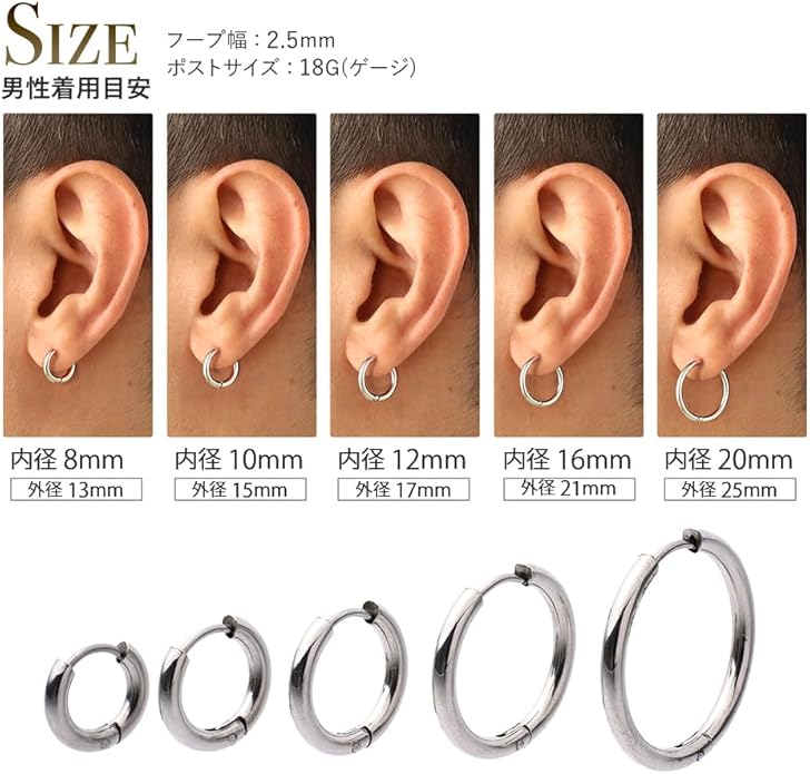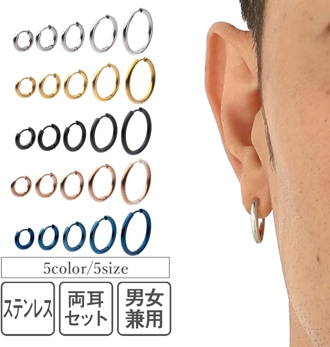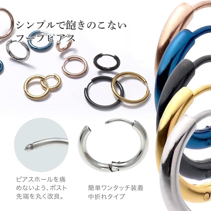 【王道のフープピアス】王道で定番のシンプルなフープピアスです。シンプルなので男女、シーン、服装問わず着用可能な万能アイテムです。