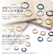 【金属アレルギー対応】 ステンレスは金属の中でもアレルギー性が極めて低い素材です。 【お風呂、海OK】 耐食性がとても高いので水や汗によるサビ、変色に強いのでお風呂や海へ気にせずアクセサリーを着けたまま入ることができます。 【お手入れ簡単】 ステンレスは硬い金属なので傷がつきにくく、変形しにくです。また水にぬれた時も乾いたタオルでさっと拭くだけでOK